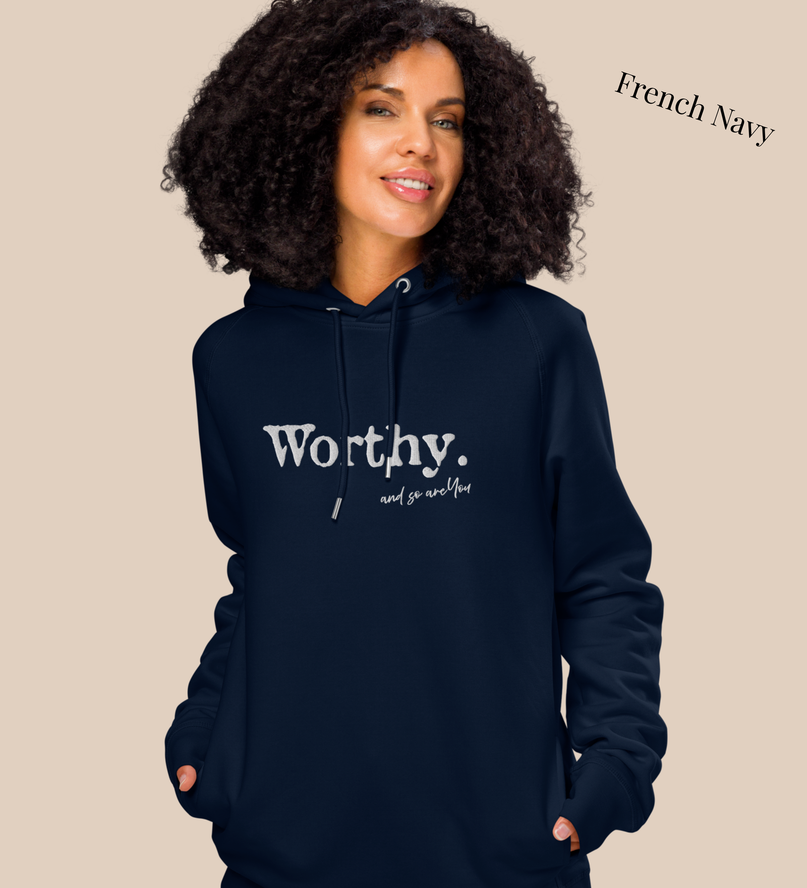 The embroidered “Worthy.” serves as your reminder—that your value isn’t up for debate.