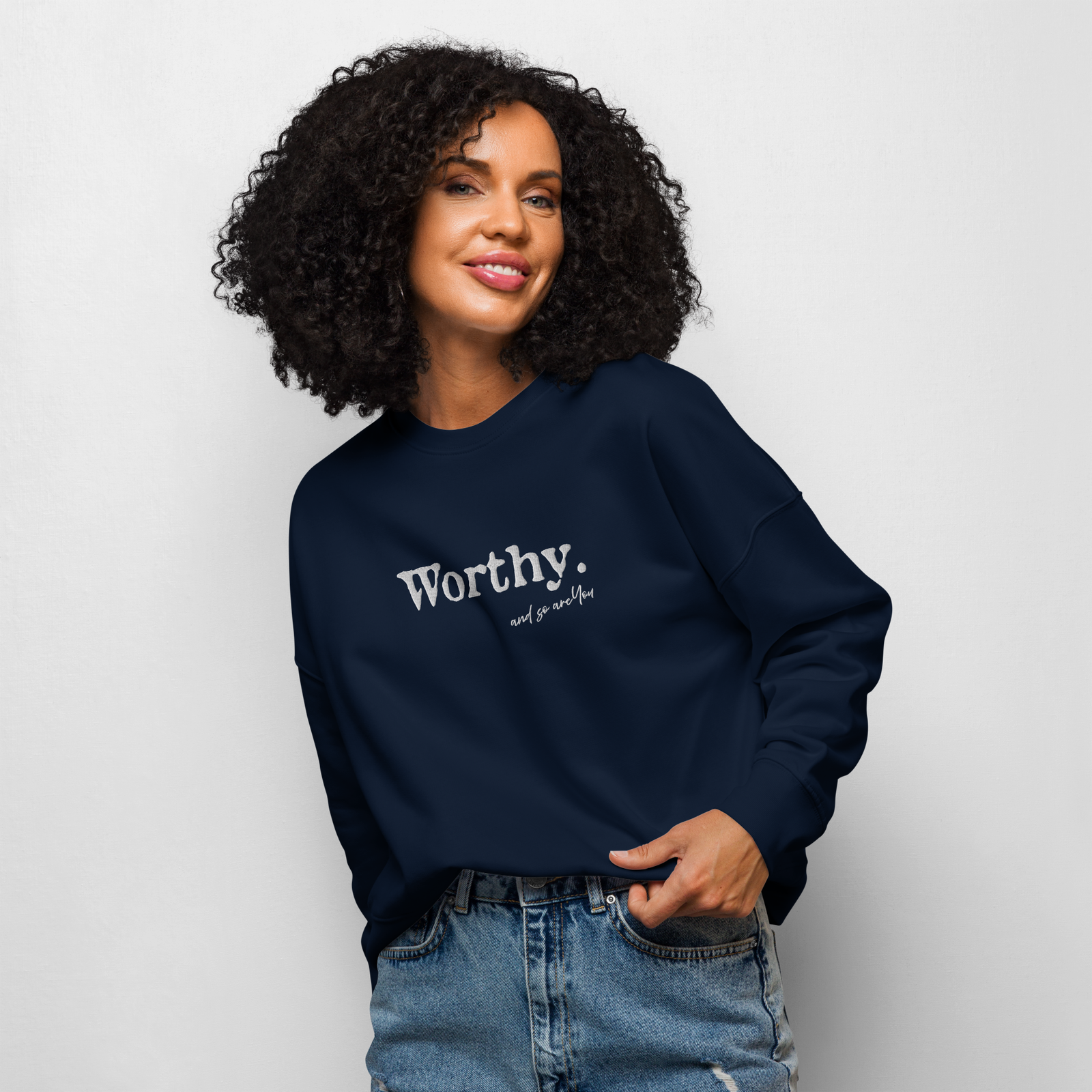 The embroidered “Worthy.” isn’t just a word—it’s a declaration of your inherent value.